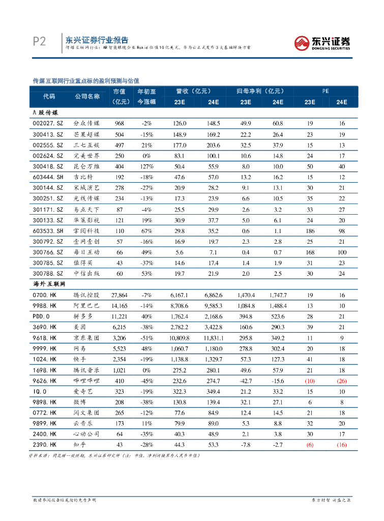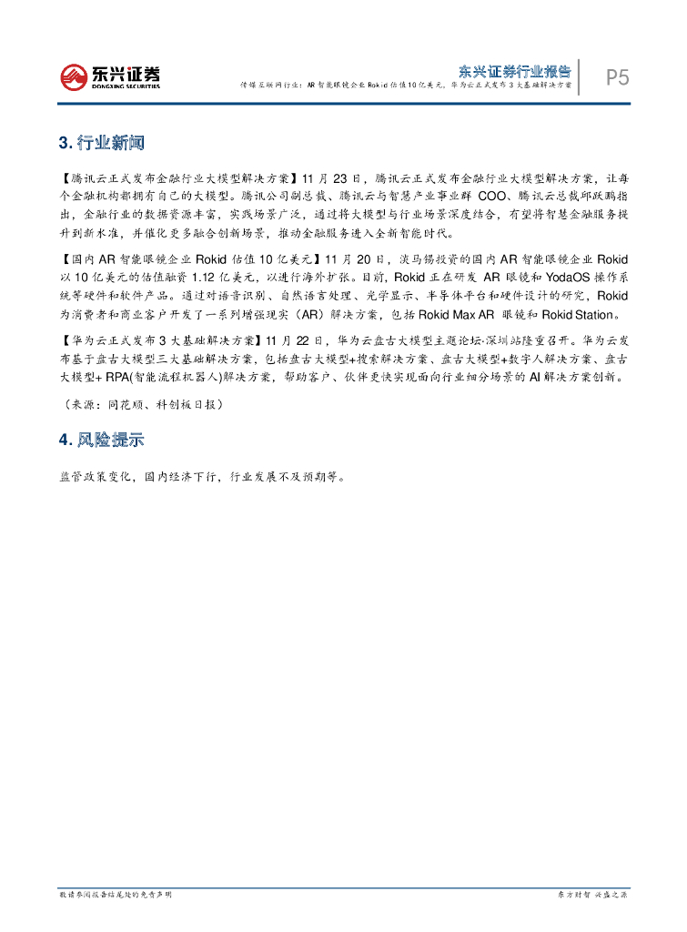 东兴证券:传媒互联网行业:AR智能眼镜企业Rokid估值10亿美元,华为云正式发布3大基础解决方案.pdf