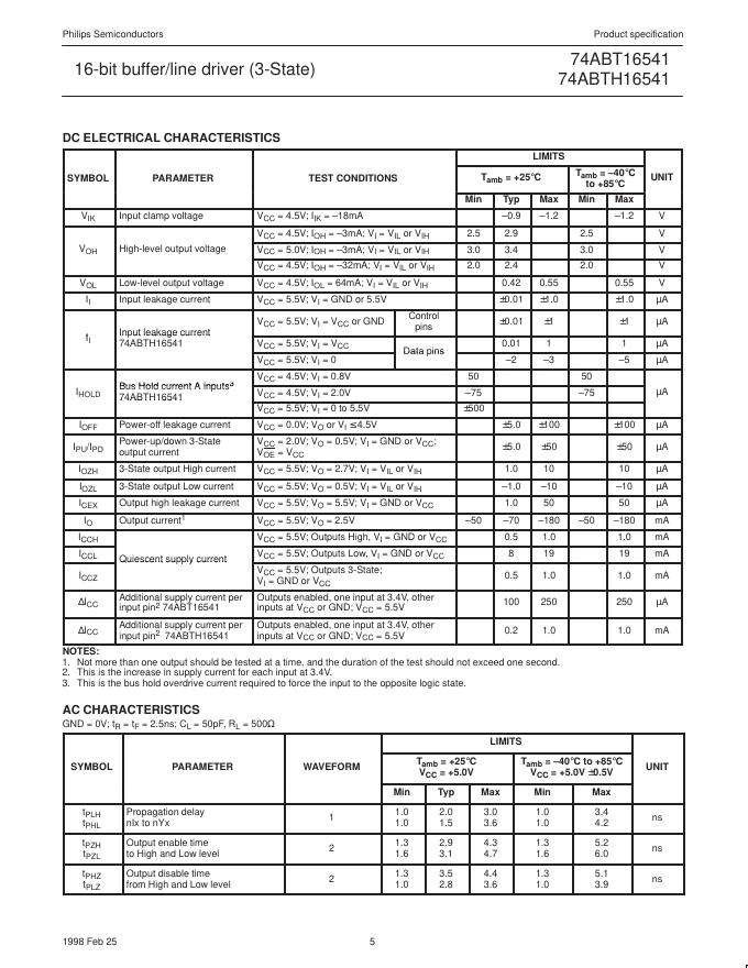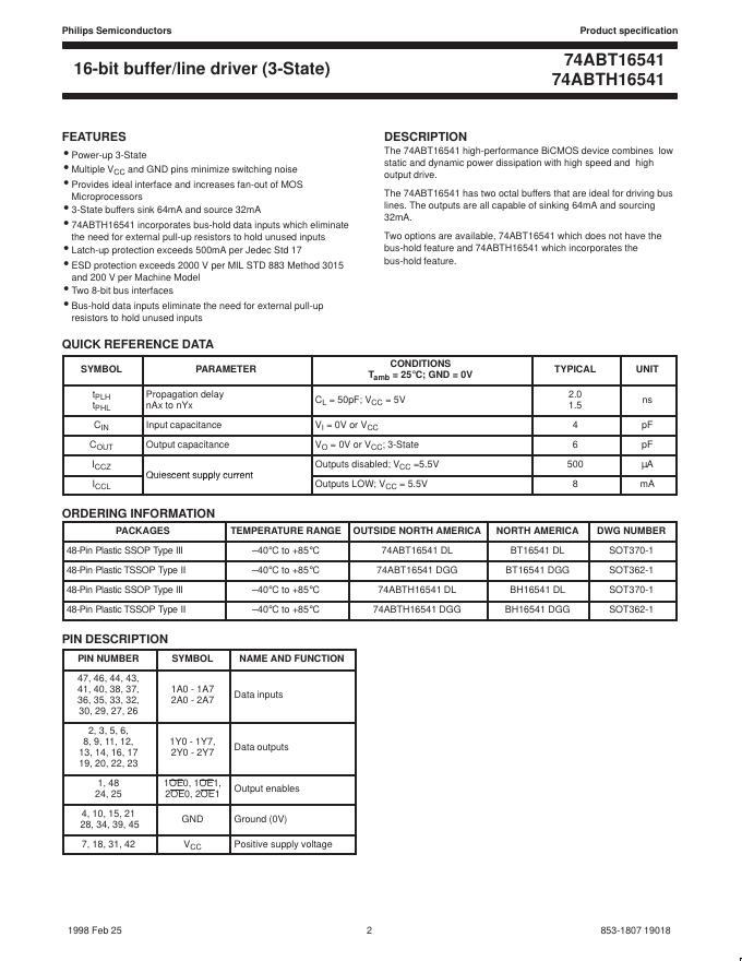 PHILIPS 74ABT16541 74ABTH16541 16-bit buffer/line driver (3-State) 数据手册.pdf