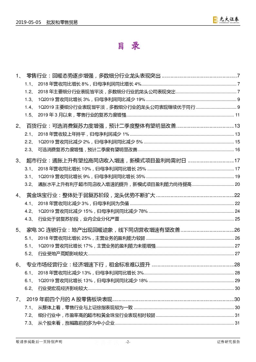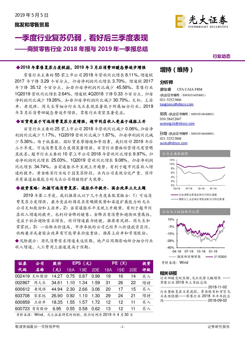光大证券:商贸零售行业2018年报与2019年一季报总结:一季度行业复苏仍弱,看好后三季度表现.pdf