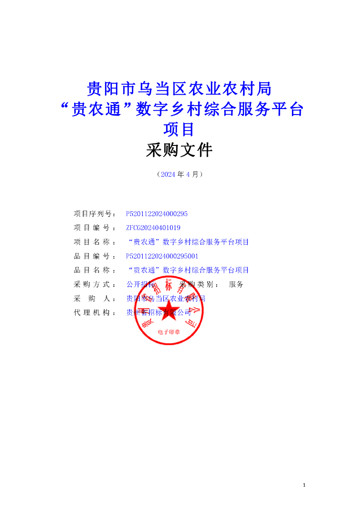 贵阳市乌当区农业农村局“贵农通”数字乡村综合服务平台项目招标文件.pdf