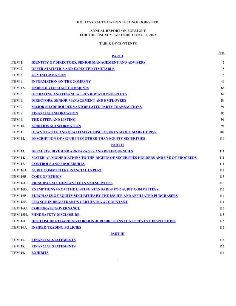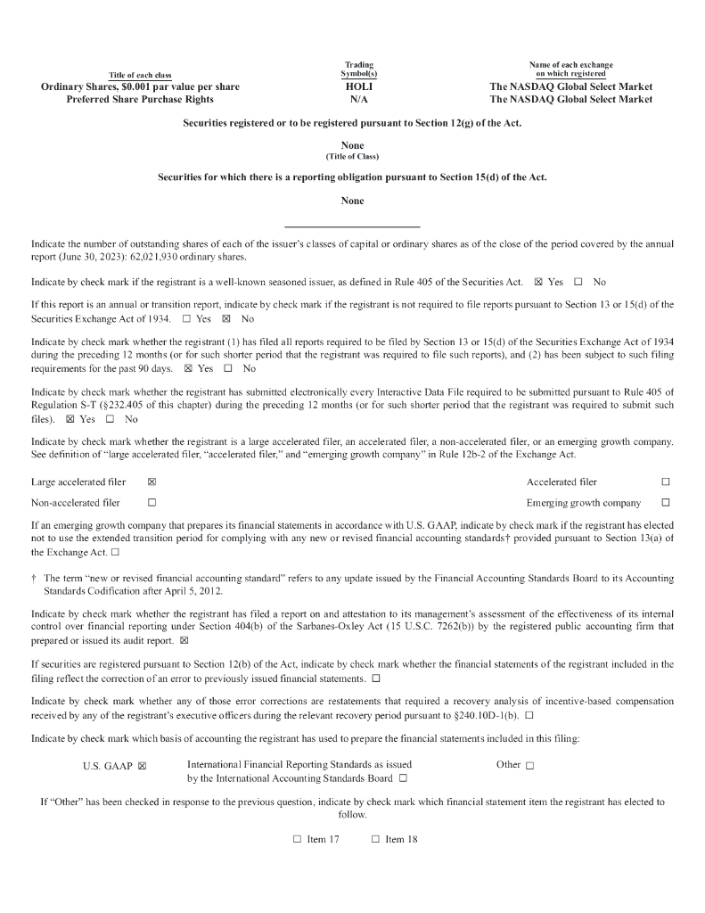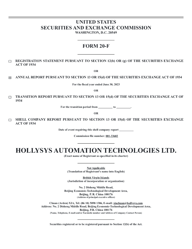 Hollysys Automation Technologies, Ltd.(HOLI)2023财年年度报告(英文版).pdf
