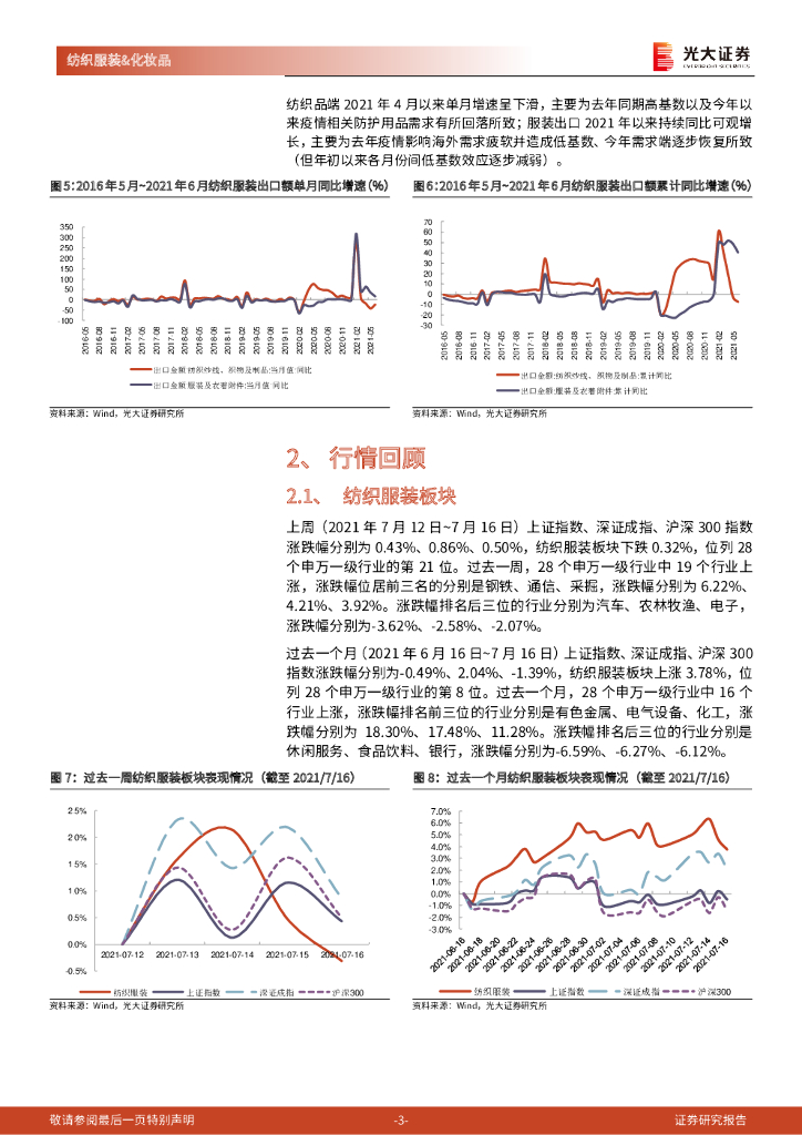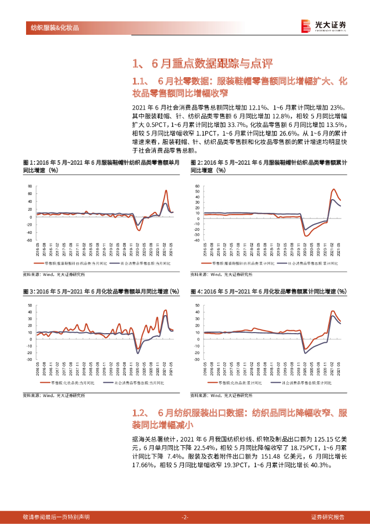 光大证券:纺织服装与化妆品行业周报:6月服装鞋帽零售额同比增长提速、化妆品增幅收窄,纺织品出口好转.pdf