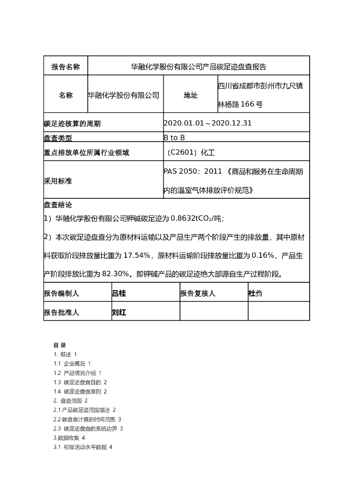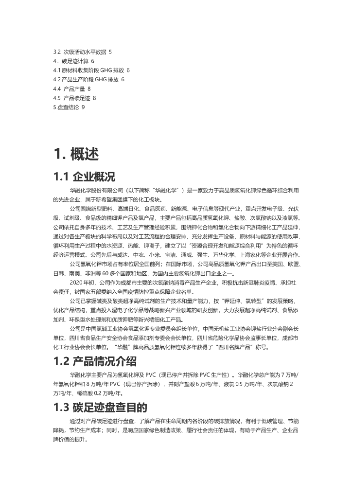 华融化学股份有限公司产品碳足迹盘查报告.doc