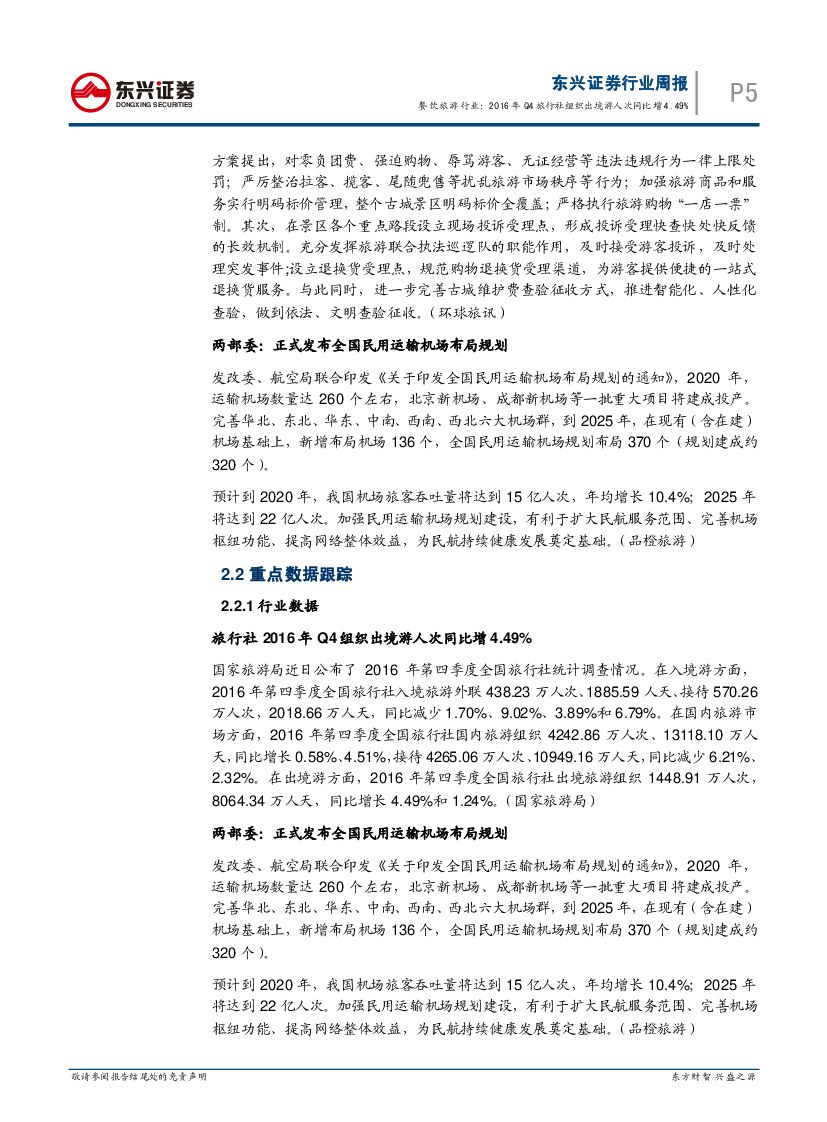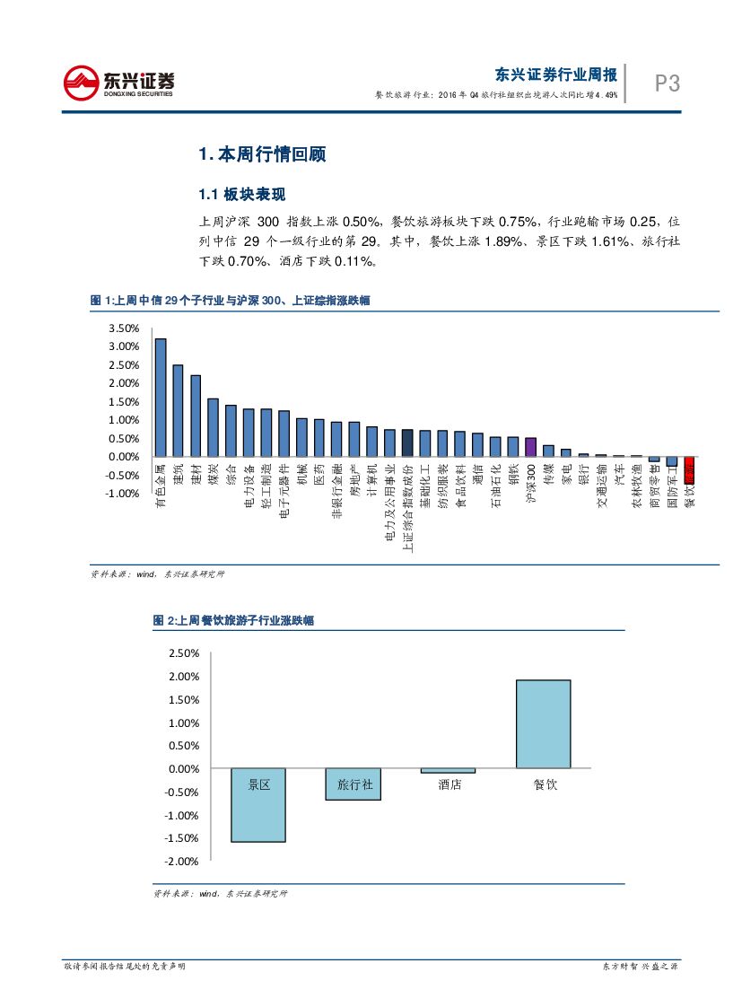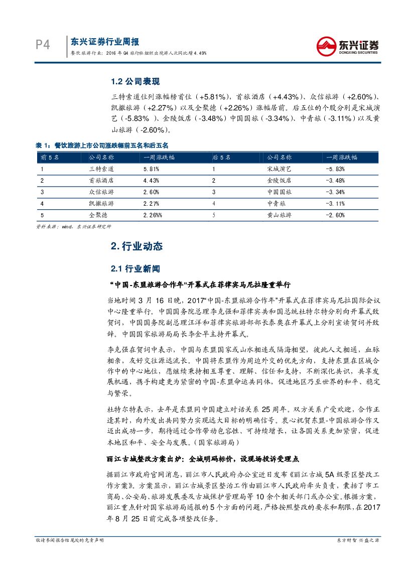 东兴证券:餐饮旅游行业2017年03月第3周周报:2016年Q4旅行社组织出境游人次同比增4.49%.pdf