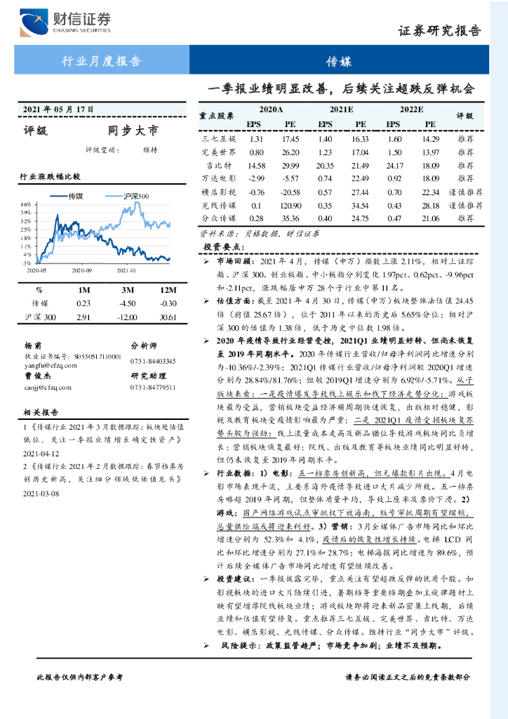 财信证券:传媒行业月度报告:一季报业绩明显改善,后续关注超跌反弹机会.pdf