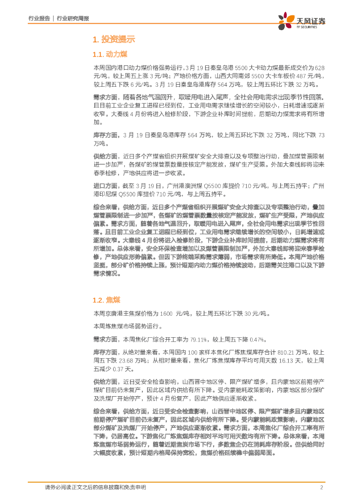 天风证券:煤炭开采一周煤炭动向:环保安全检查趋严,供给偏紧支撑煤价高位.pdf