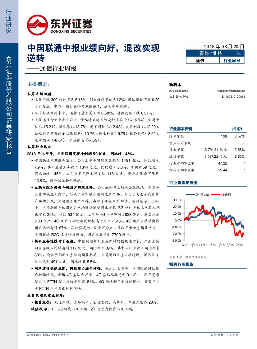 东兴证券:通信行业周报:中国联通中报业绩向好,混改实现逆转.pdf