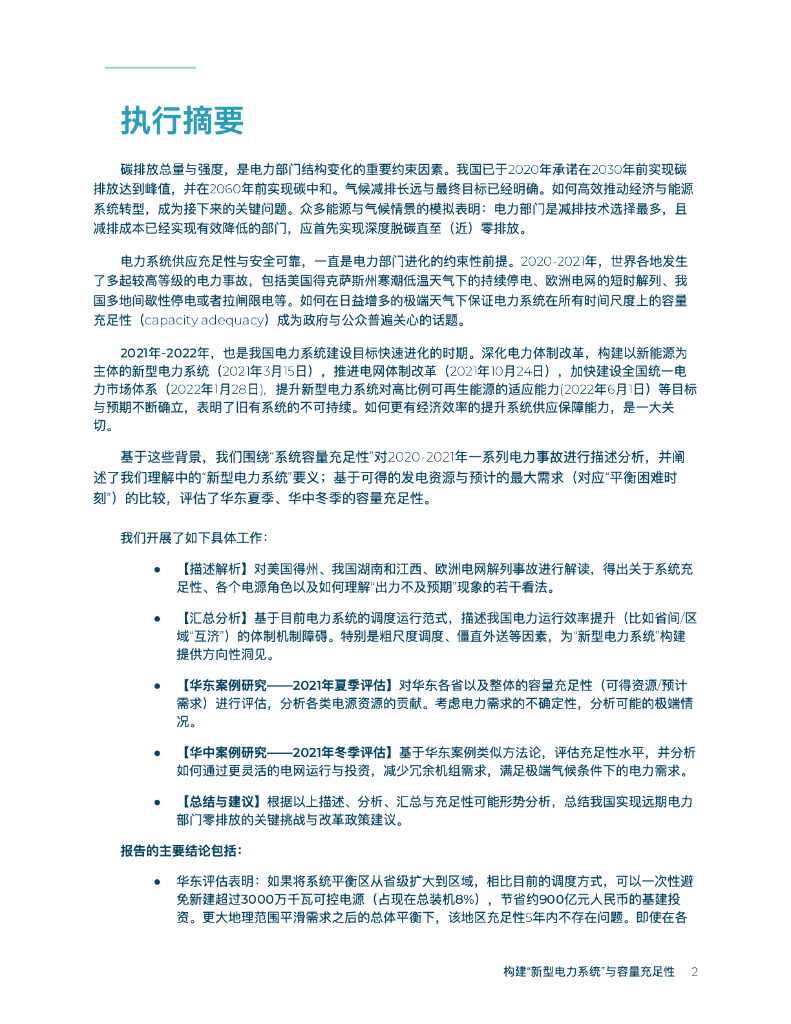 卓尔德环境研究中心:2022年构建“新型电力系统”与容量充足性——基于需求⾼峰时刻可得发电资源的实证分析.pdf