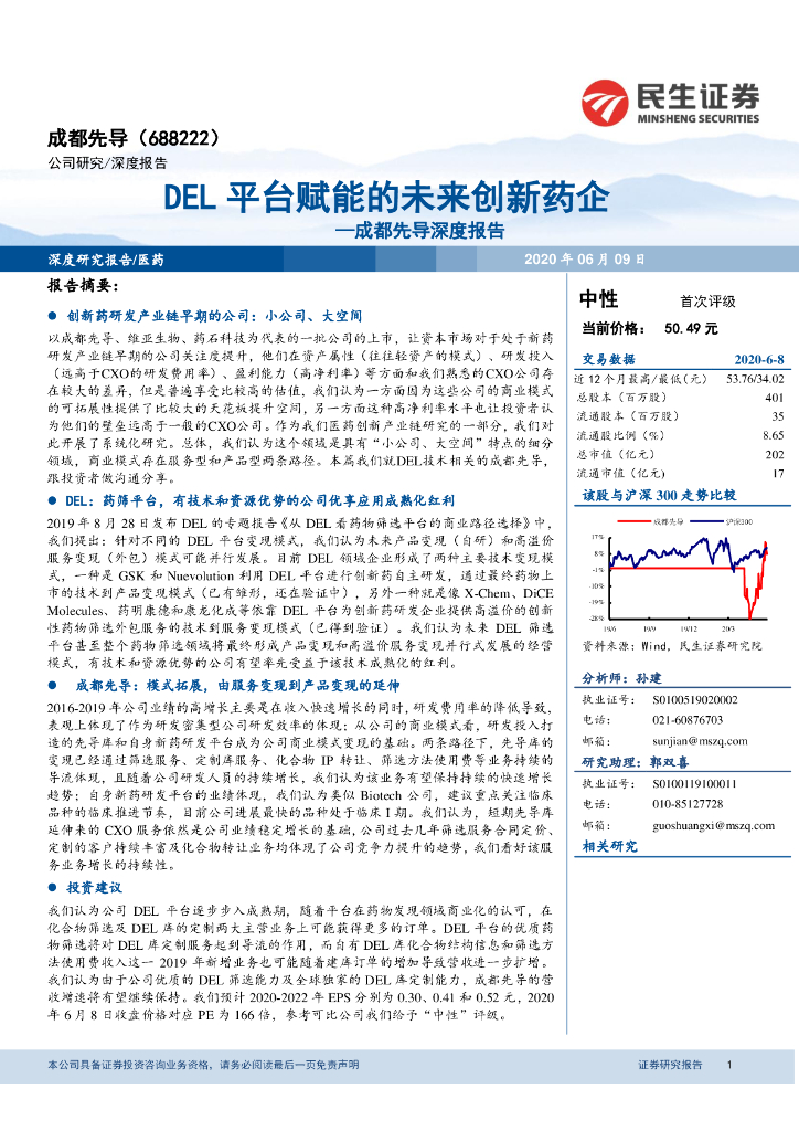 民生证券:成都先导深度报告:DEL平台赋能的未来创新药企.pdf