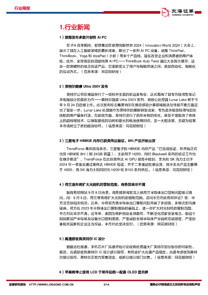 东海证券:电子行业周报:华为官宣MateXT预热新品发布会,IFA2024掀起AI热潮.pdf