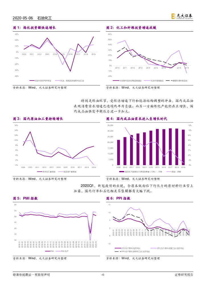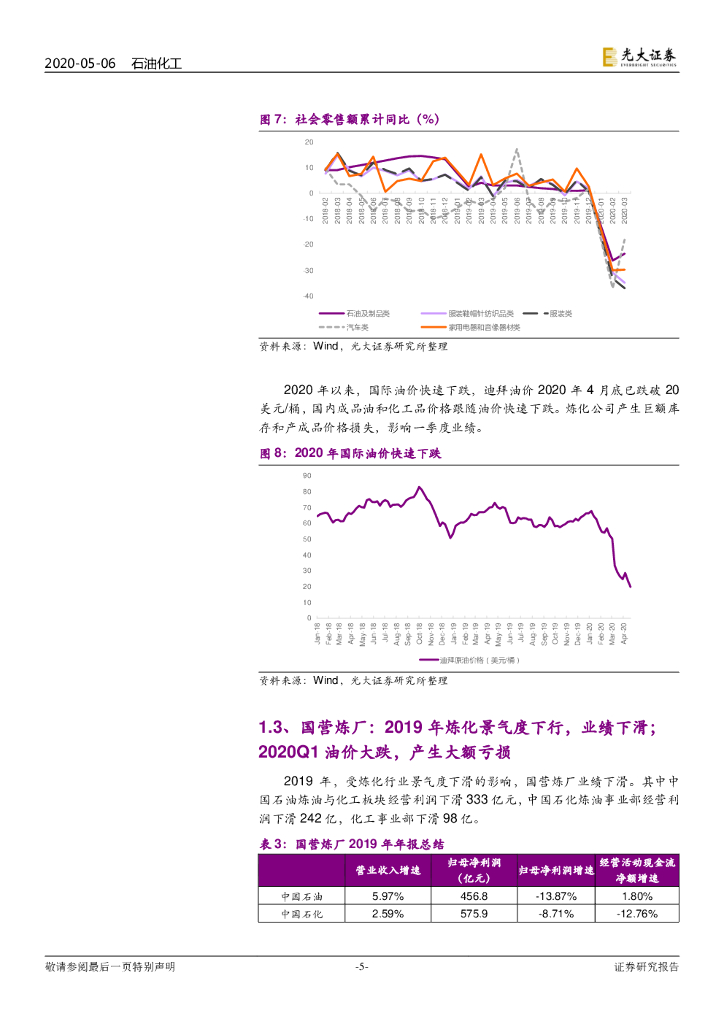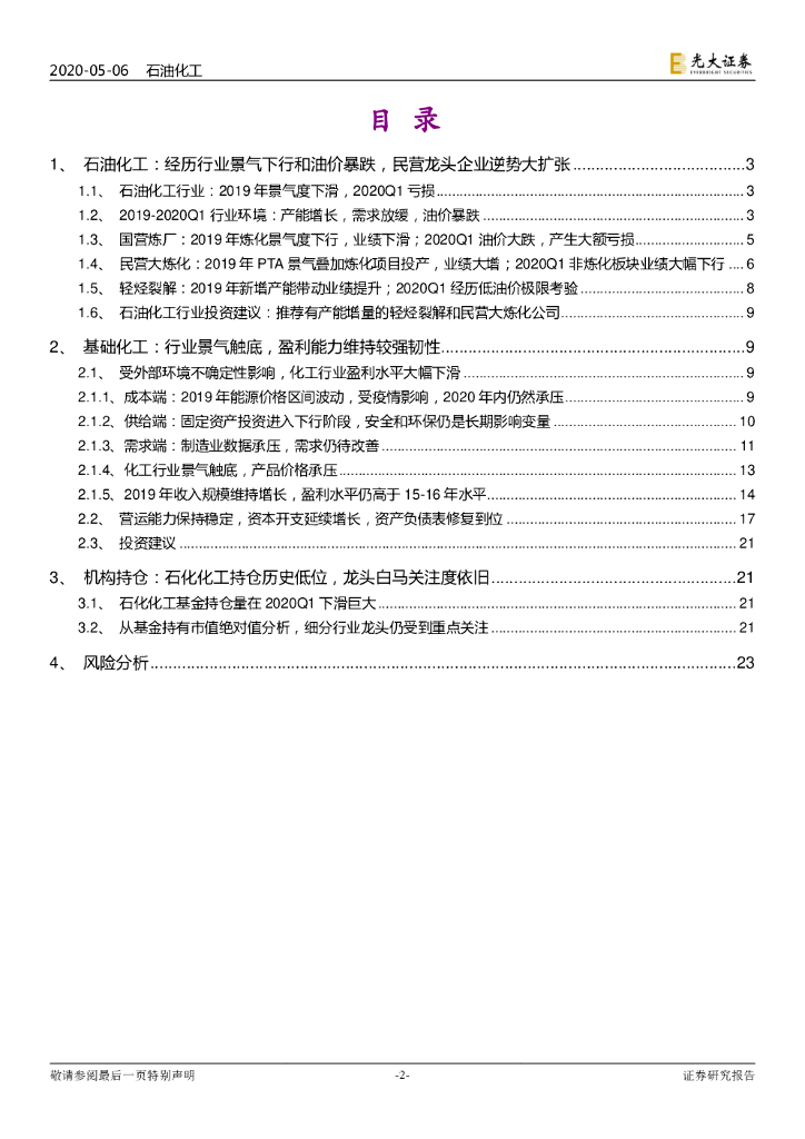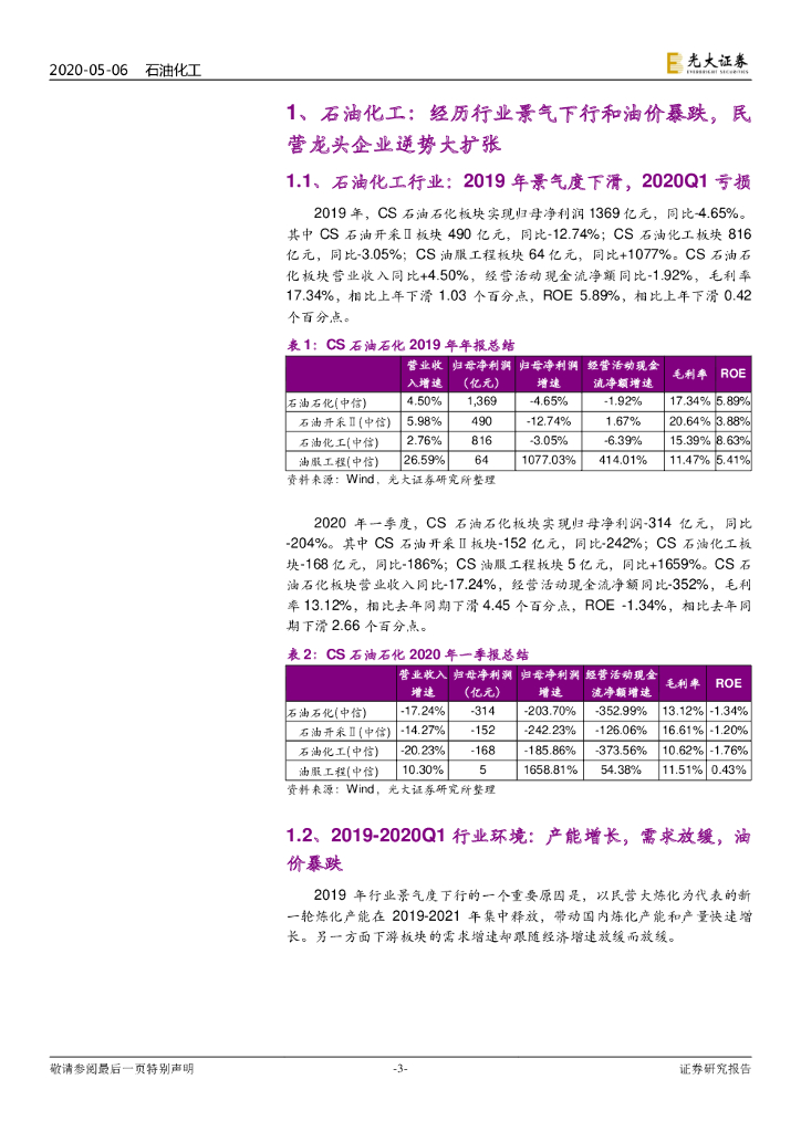 光大证券:石油化工和基础化工行业2019年年报和2020年一季报总结:石化化工景气度下滑,龙头盈利维持韧性,静待拐点.pdf