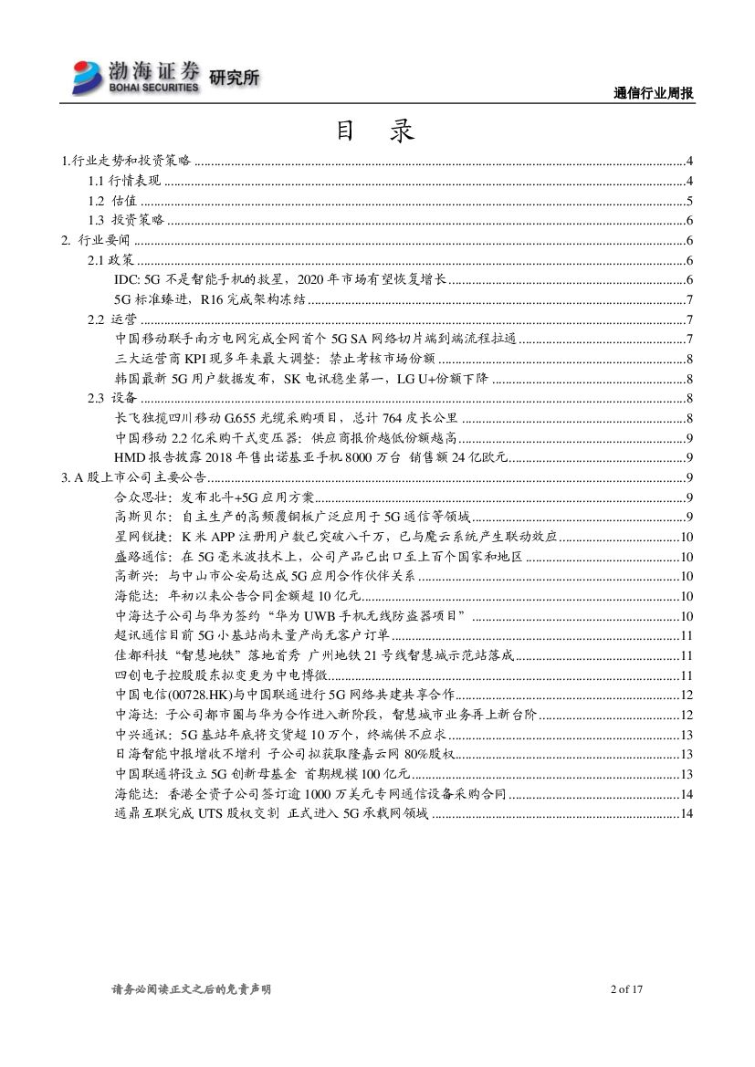 渤海证券:通信行业周报:5G行情纵深化发展,关注5G应用相关品种.pdf