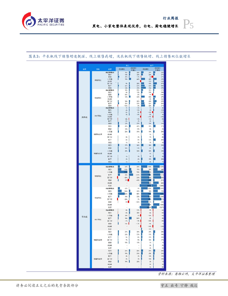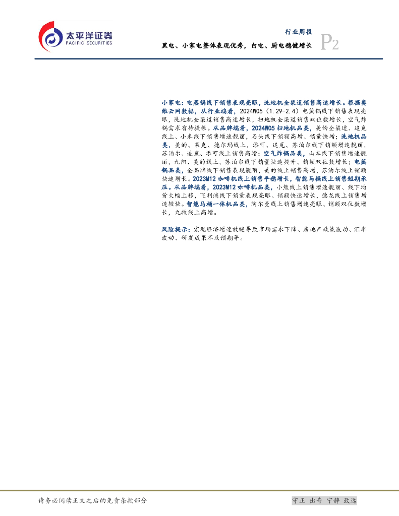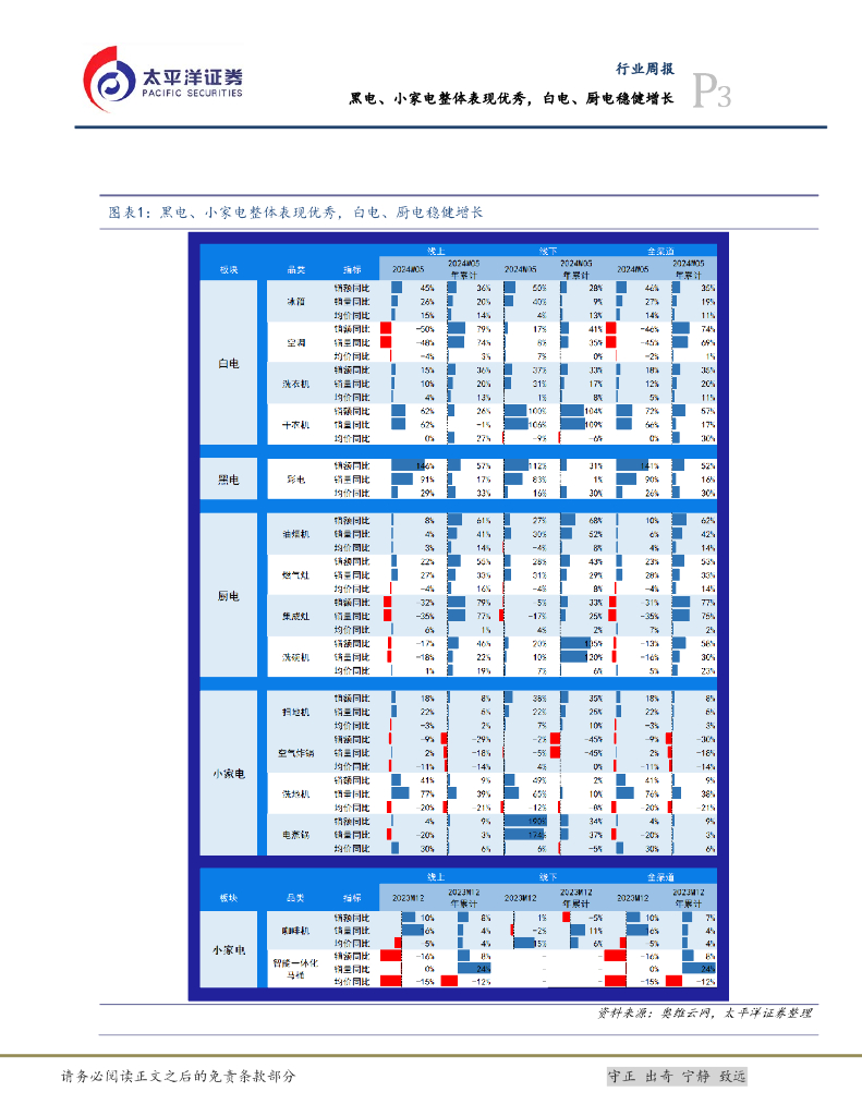 太平洋证券:白色家电Ⅱ行业周报:2024W05黑电、小家电整体表现优秀,白电、厨电稳健增长.pdf