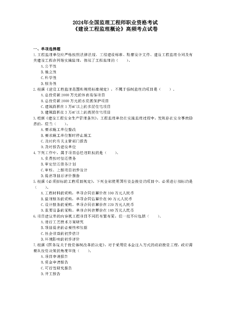 2024年监理工程师《监理概论》高频考点试卷.pdf