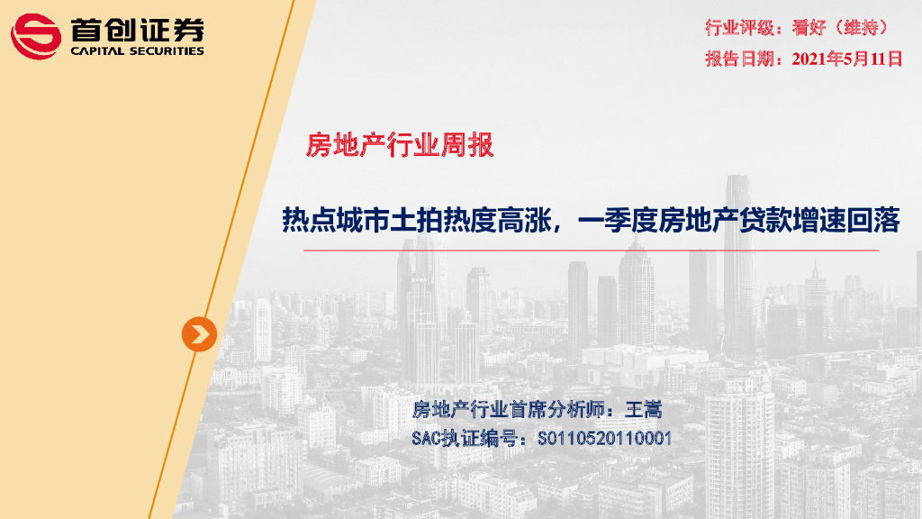 首创证券:房地产行业周报:热点城市土拍热度高涨,一季度房地产贷款增速回落.pdf