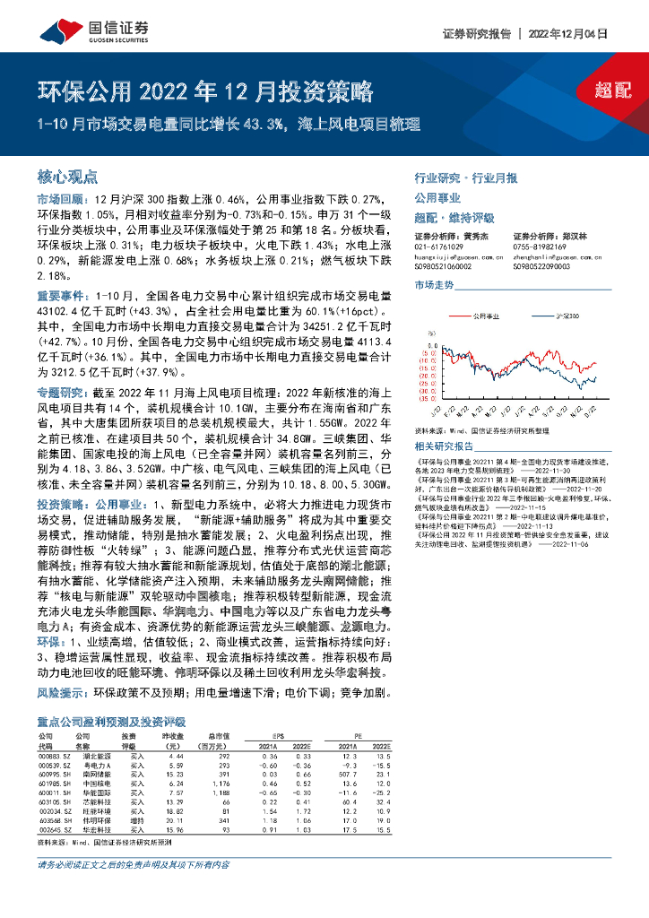 国信证券:环保公用2022年12月投资策略:1-10月市场交易电量同比增长43.3%,海上风电项目梳理.pdf
