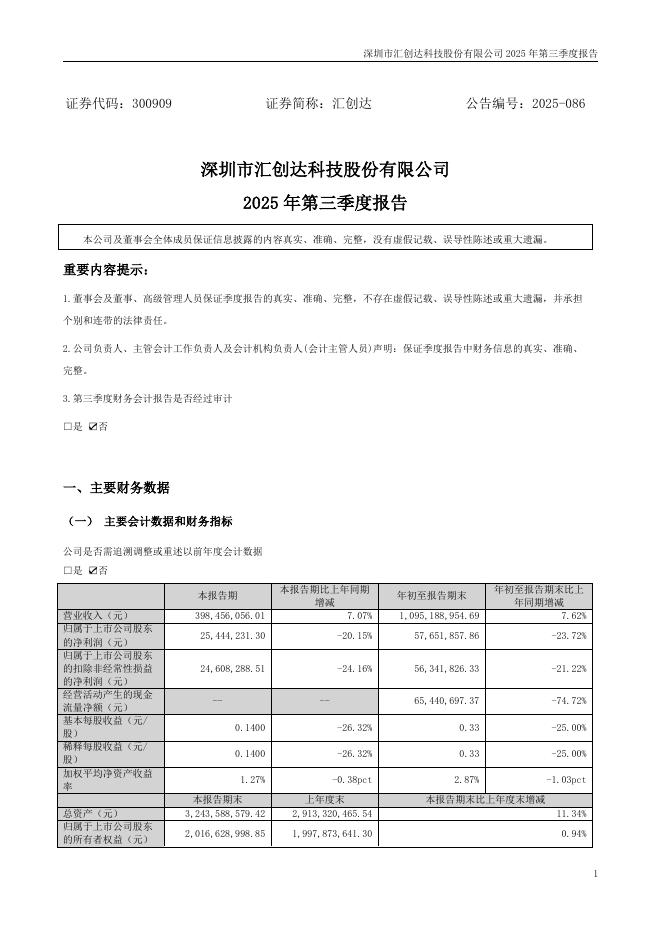 300909-汇创达:2025年三季度报告.pdf
