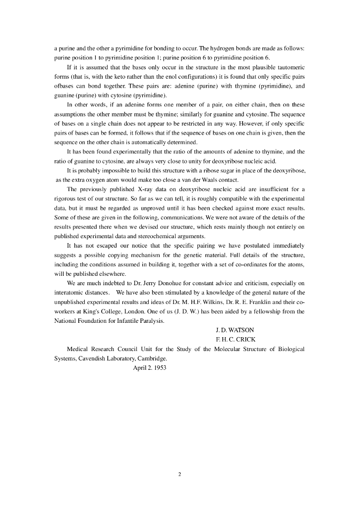 《药学的生物化学基础》文献资料-DNA双螺旋结构发现的原始论文 from Nature 1953.pdf
