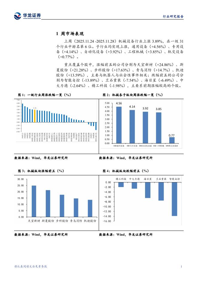 华龙证券:机械设备行业周报:人形机器人进入量产准备的关键阶段,建议积极布局.pdf
