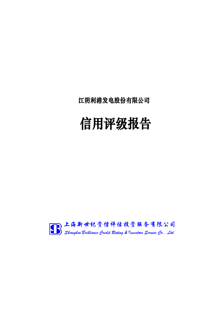 新世纪:江阴利港发电股份有限公司主体信用评级报告及跟踪评级安排.pdf