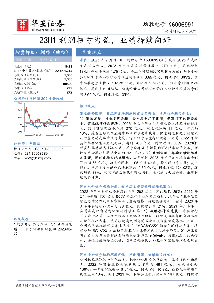 华安证券:均胜电子(600699)-23H1利润扭亏为盈,业绩持续向好.pdf