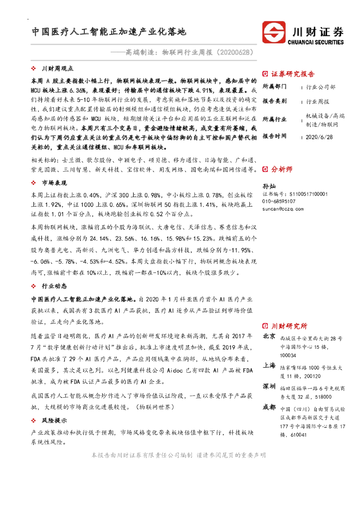 川财证券:高端制造:物联网行业周报:中国医疗人工智能正加速产业化落.pdf