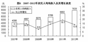 表2 2012年主要农产品产量及其增长速度