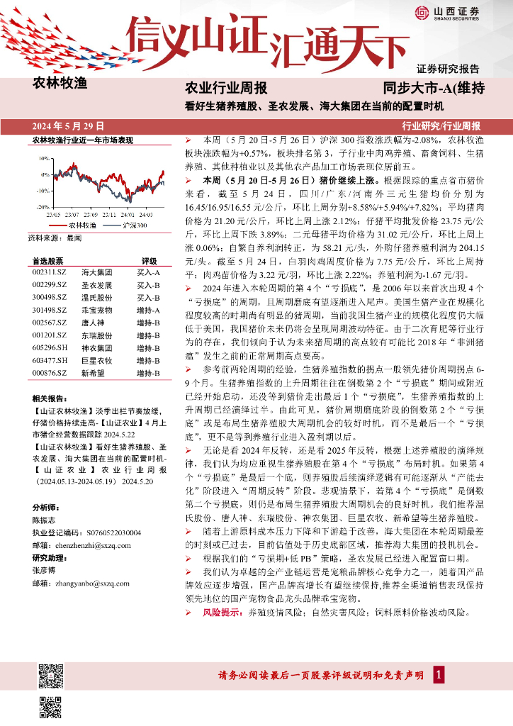 山西证券:农业行业周报:看好生猪养殖股、圣农发展、海大集团在当前的配置时机.pdf