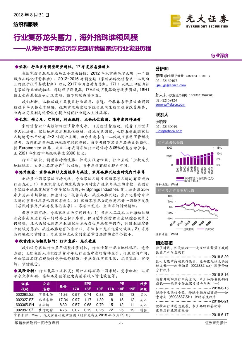 光大证券:纺织和服装行业:从海外百年家纺沉浮史剖析我国家纺行业演进历程:行业复苏龙头蓄力,海外拾珠谁领风骚.pdf
