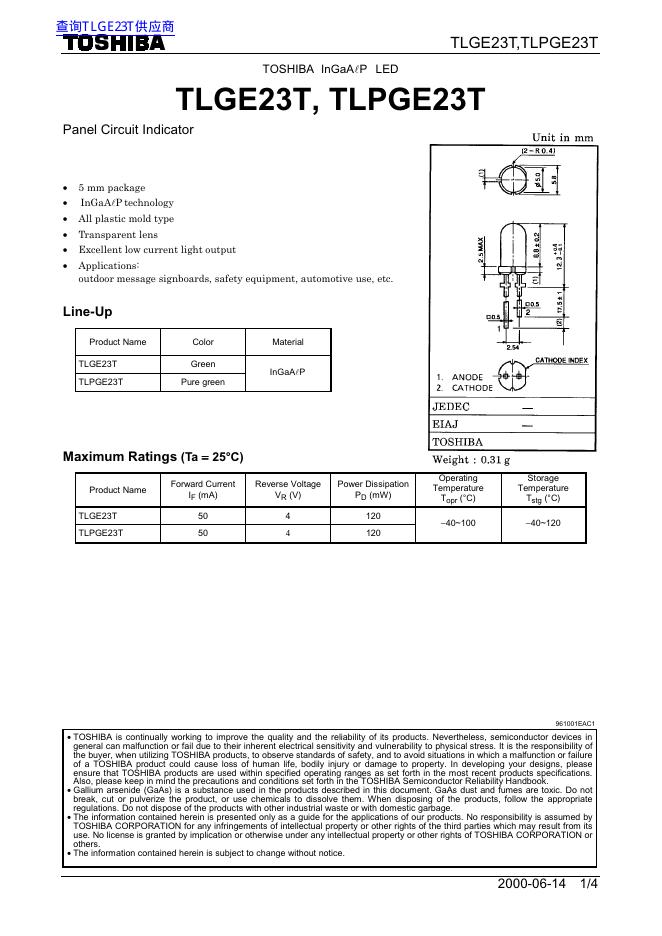 东芝 TLGE23T, TLPGE23T 数据手册.pdf
