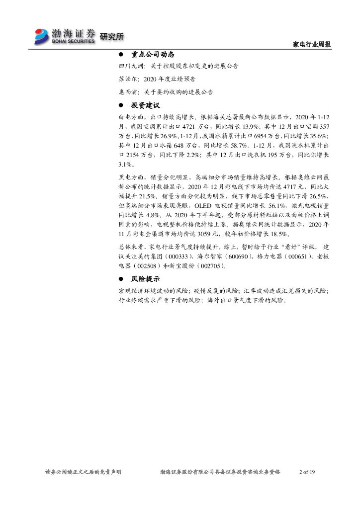渤海证券:家电行业周报:2020年我国空调出口同比增长13.9%.pdf