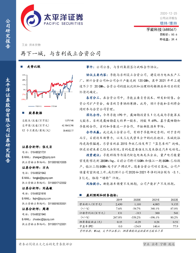 太平洋证券:孚能科技(688567)-再下一城,与吉利成立合资公司.pdf