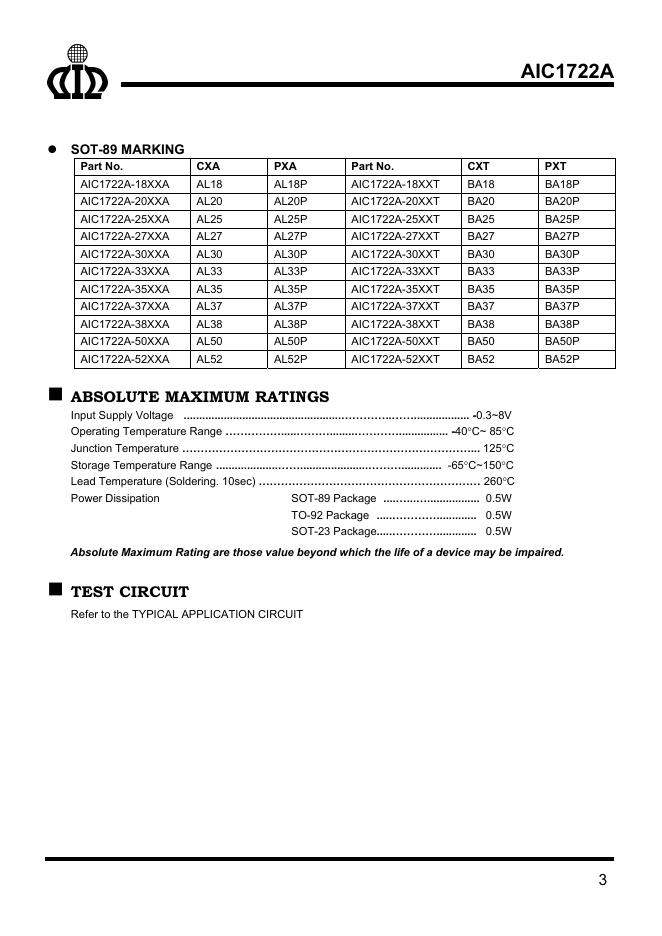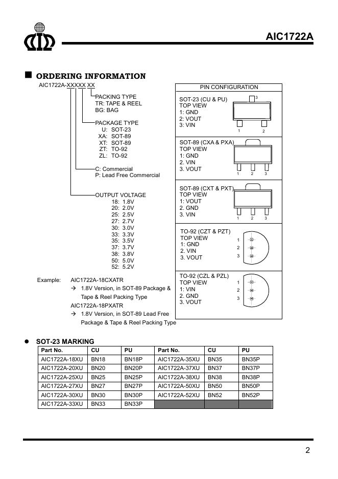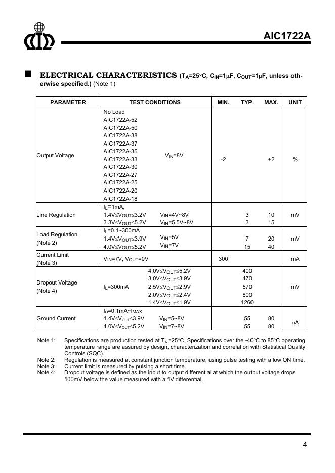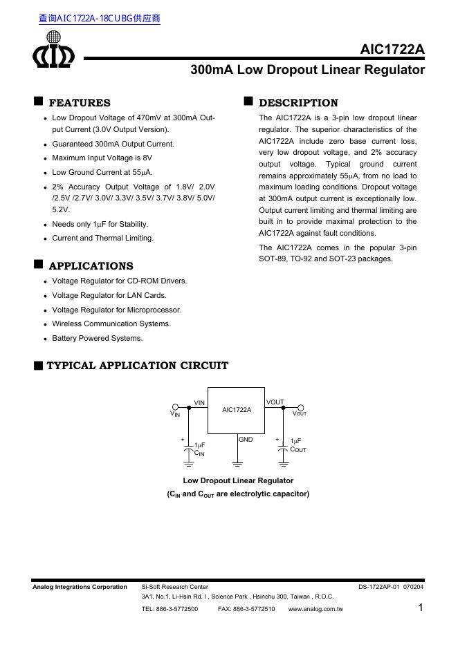 AIC1722A 300mA Low Dropout Linear Regulator 数据手册.pdf