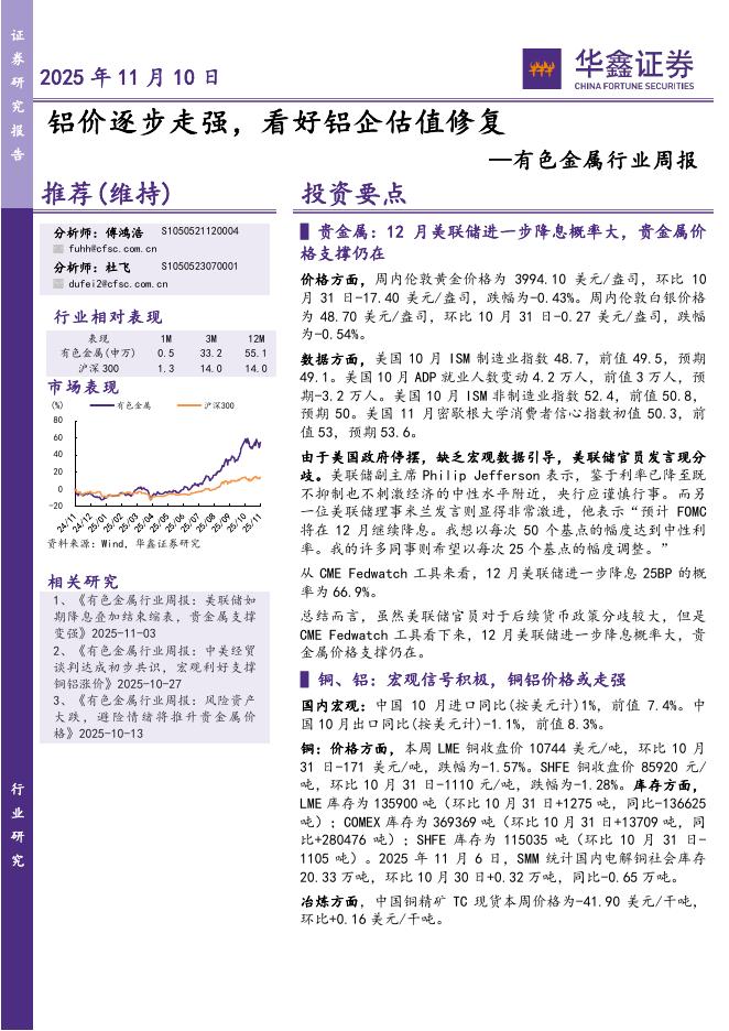 华鑫证券:有色金属行业周报:铝价逐步走强,看好铝企估值修复.pdf