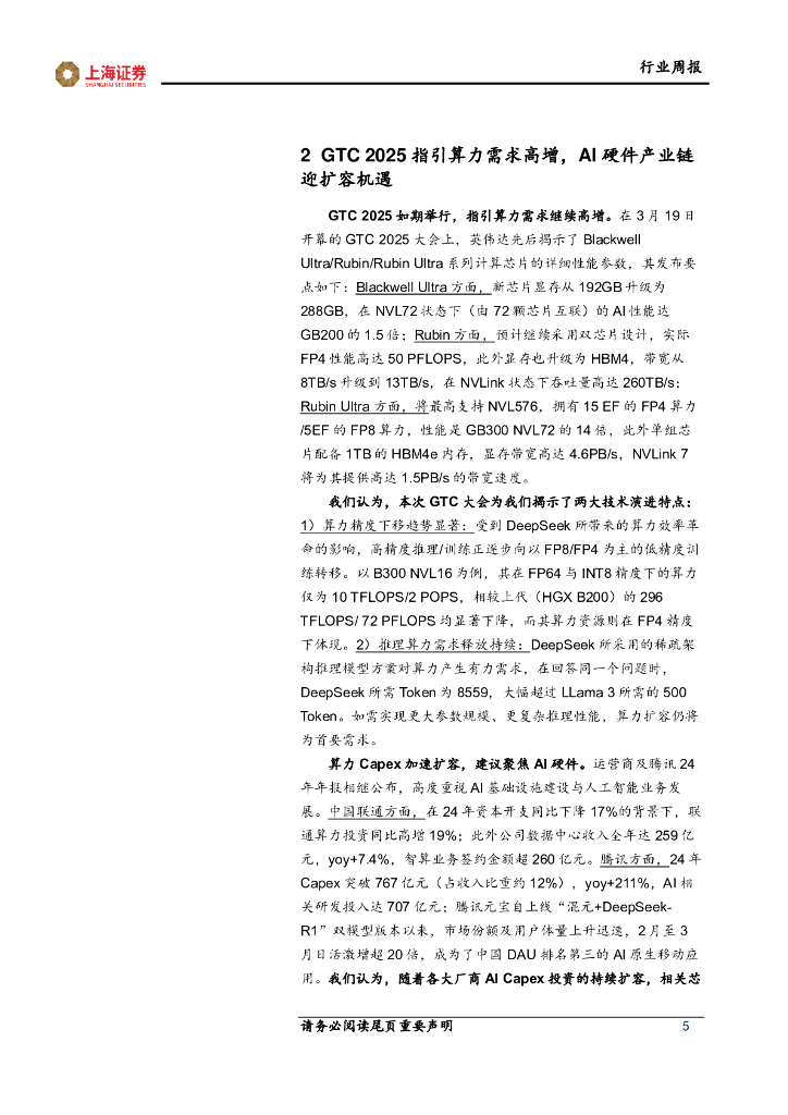 上海证券:通信行业周报:GTC2025指引算力需求高增,AI硬件产业链迎扩容机遇.pdf