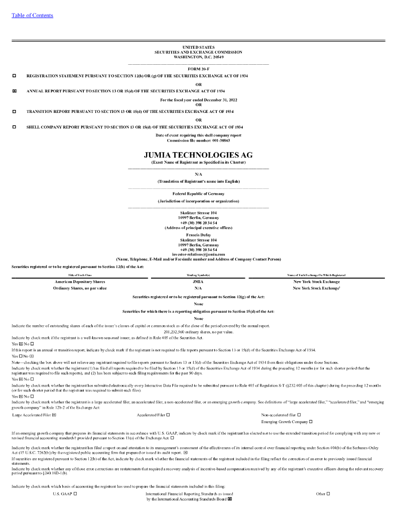 Jumia Technologies AG(JMIA)2022财年年度报告(英文版).pdf
