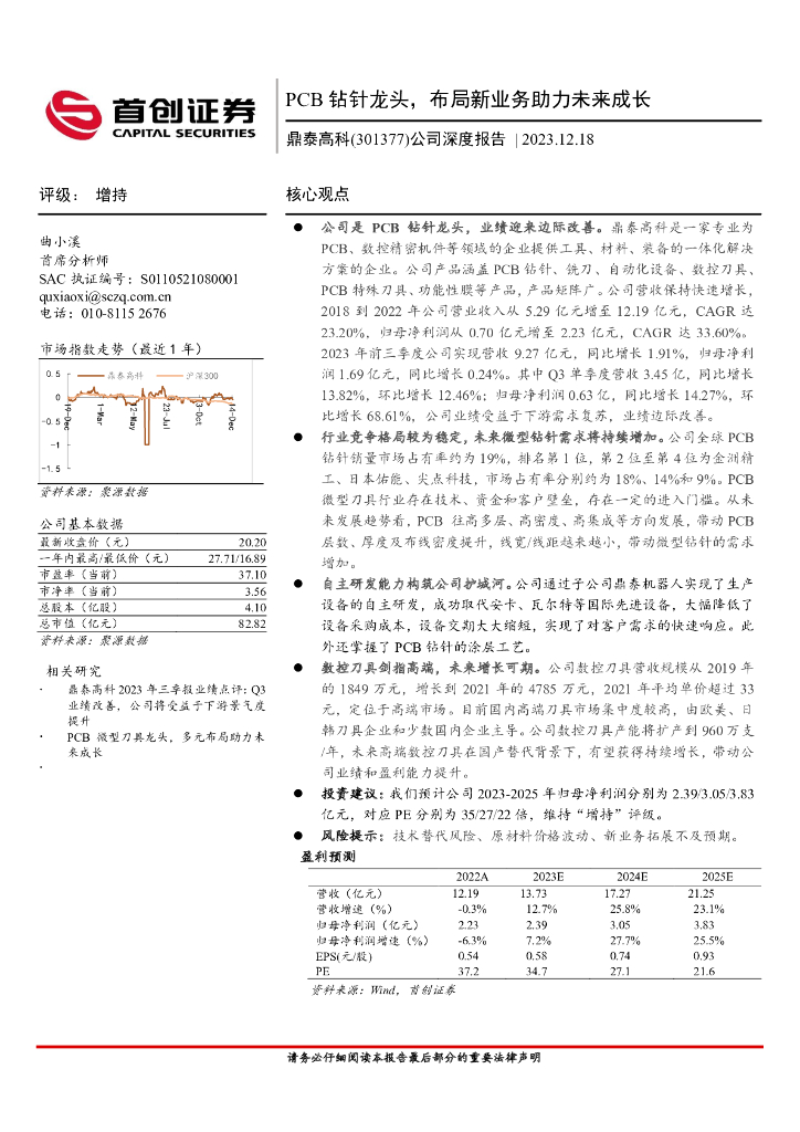 首创证券:鼎泰高科(301377)-公司深度报告:PCB钻针龙头,布局新业务助力未来成长.pdf