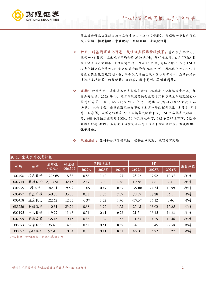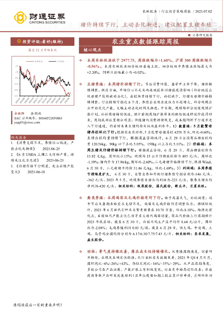 财通证券:农业重点数据跟踪周报:猪价持续下行,主动去化渐进,建议配置生猪养殖.pdf