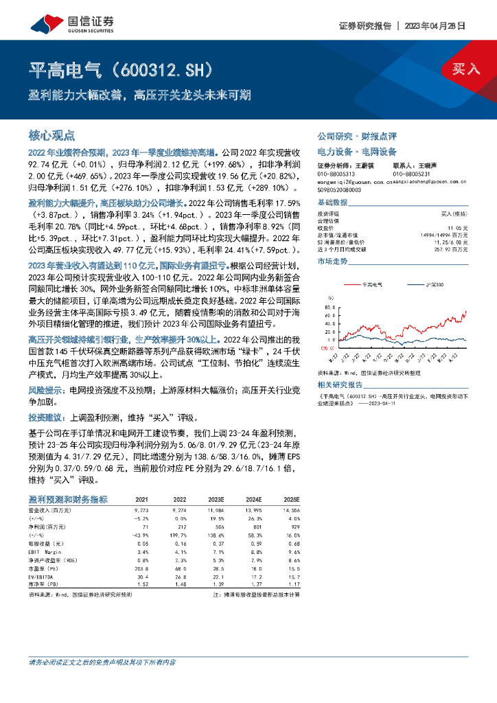国信证券:平高电气(600312)-盈利能力大幅改善,高压开关龙头未来可期.pdf