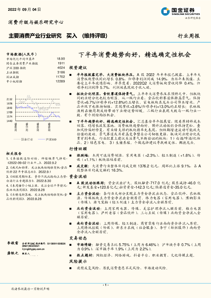 国金证券:主要消费产业行业周报:下半年消费趋势向好,精选确定性机会.pdf