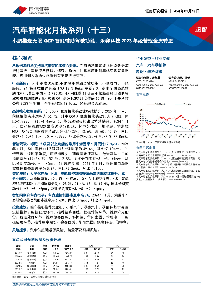 国信证券:汽车智能化月报系列(十三):小鹏推送无限XNGP智能辅助驾驶功能,禾赛科技2023年经营现金流转正.pdf