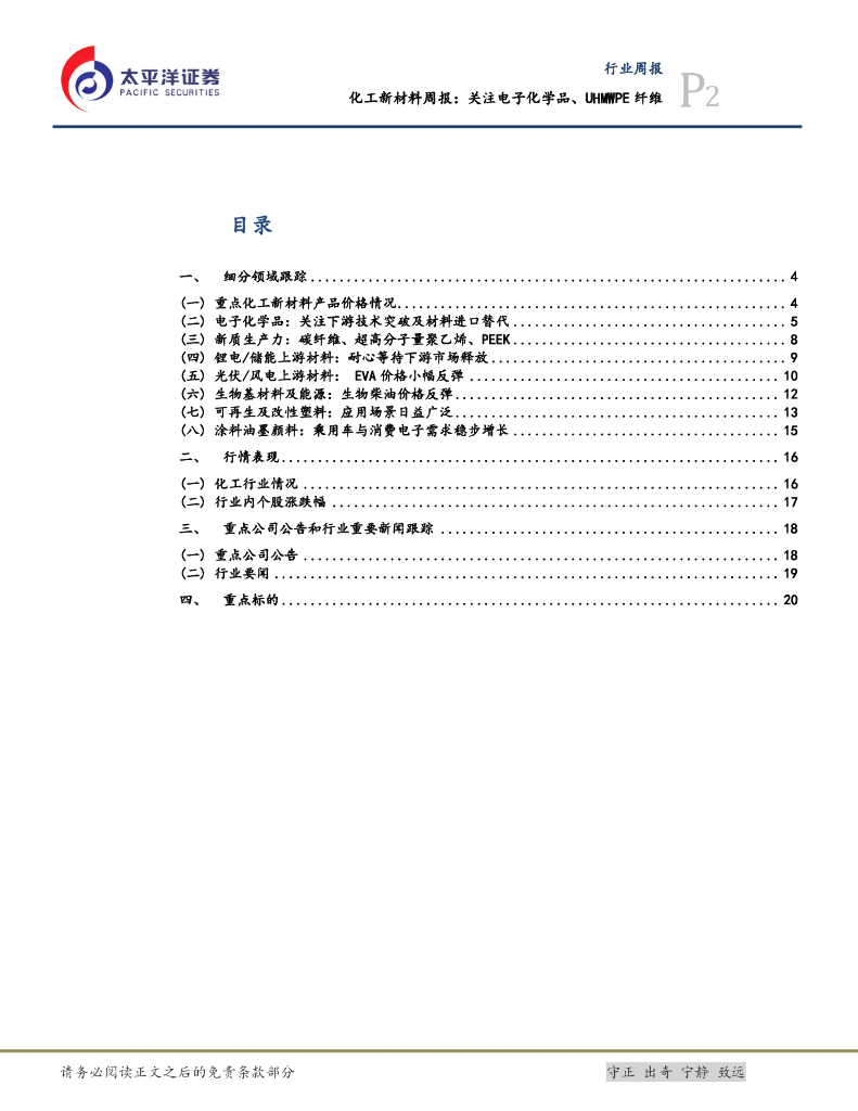 太平洋证券:化工新材料行业周报:关注电子化学品、UHMWPE纤维.pdf