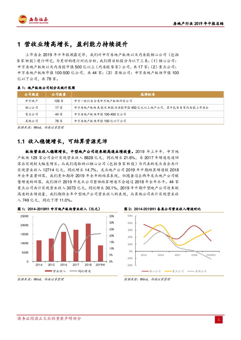 西南证券:房地产行业2019年中报总结:业绩稳健增长,现金流持续向好.pdf