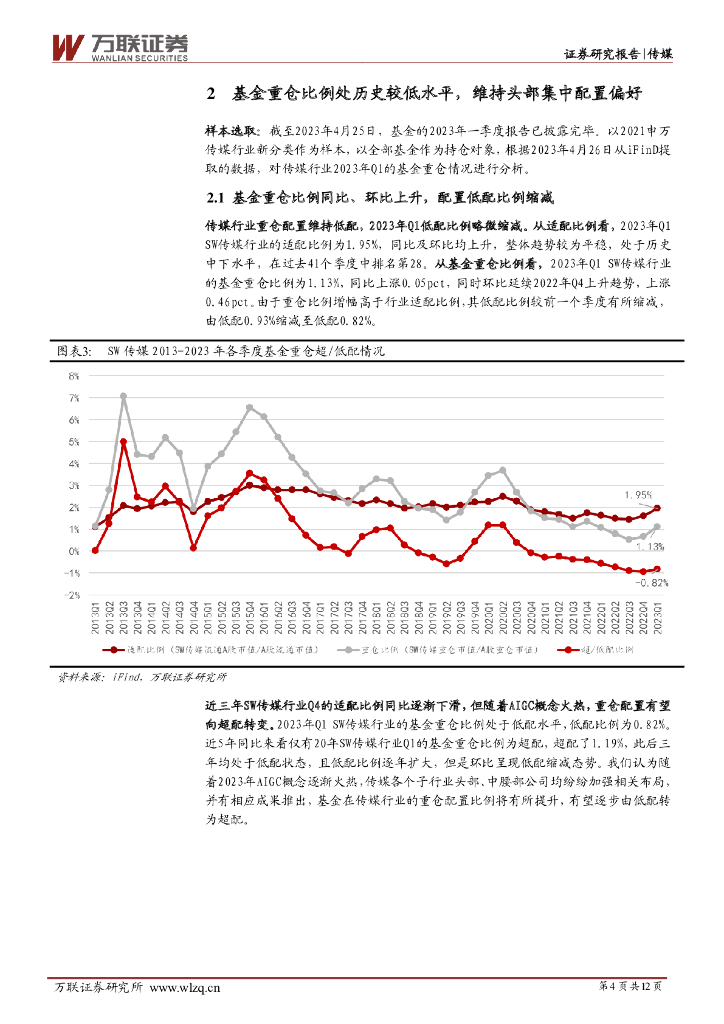 万联证券:传媒行业跟踪报告:基金重仓低配比例缩减,抱团现象显著性减弱.pdf