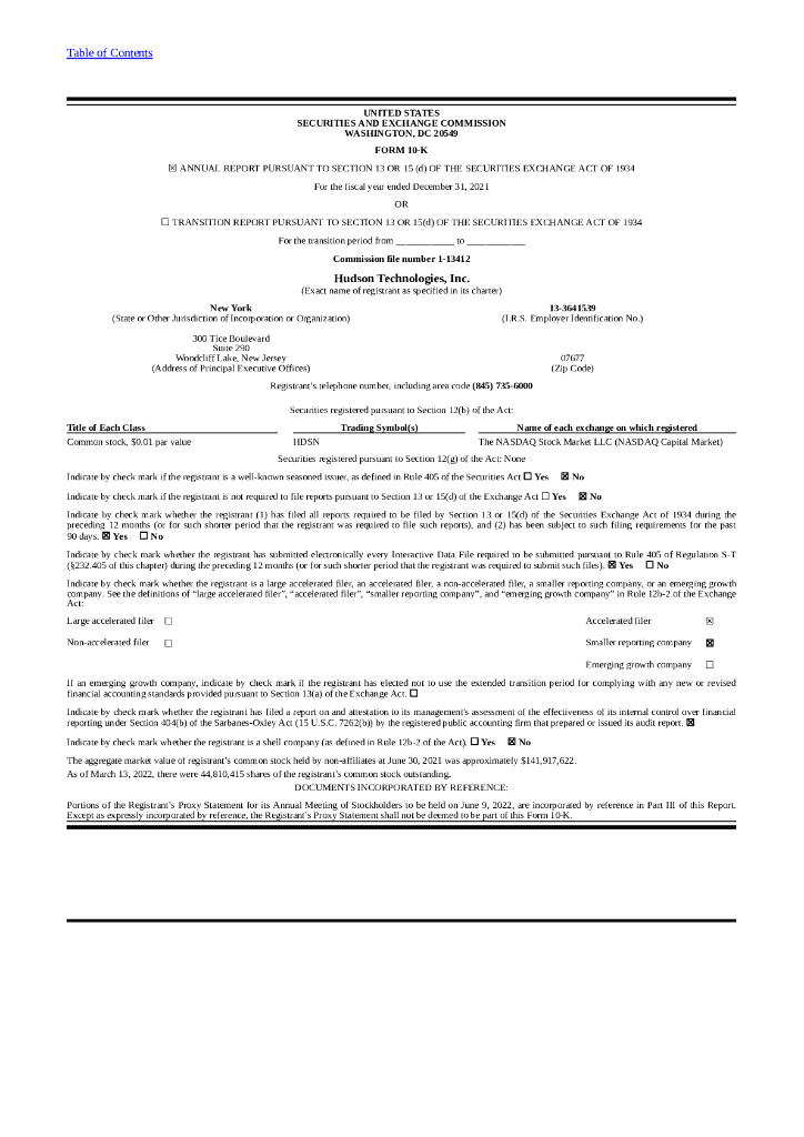 Hudson Technologies, Inc.(HDSN)2021财年年度报告(英文版).pdf