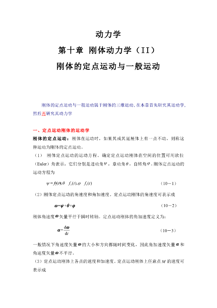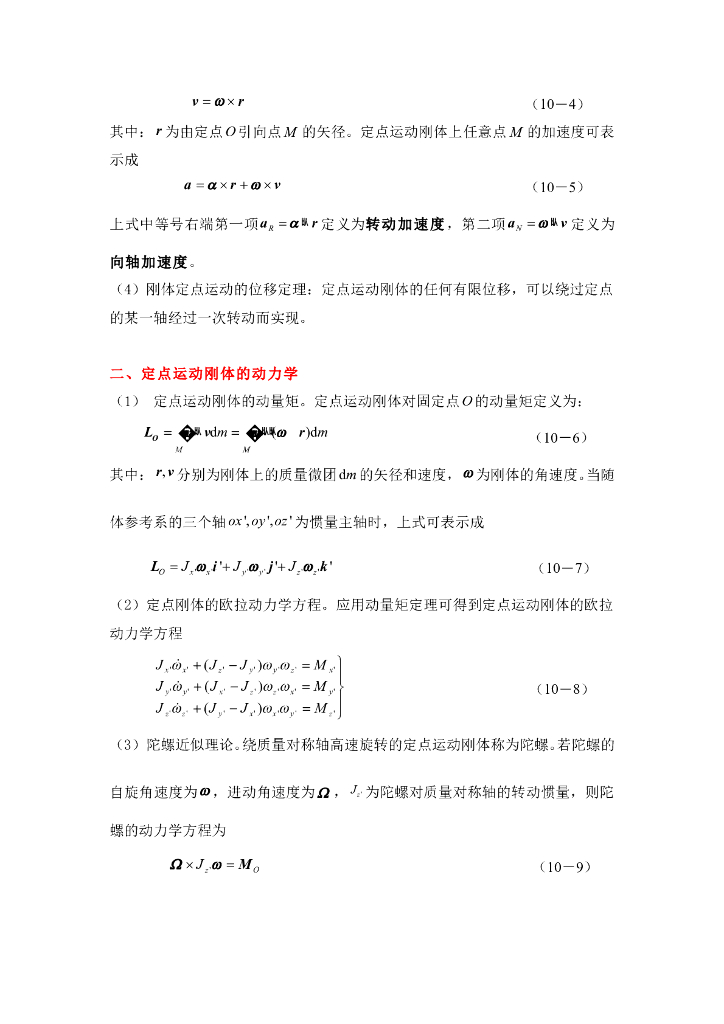 《理论力学》第十章刚体的定点运动与一般运动复习指导.pdf