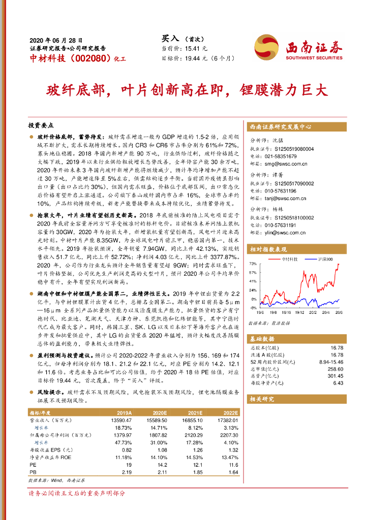 西南证券:中材科技(002080)-玻纤底部,叶片创新高在即,锂膜潜力巨大.pdf