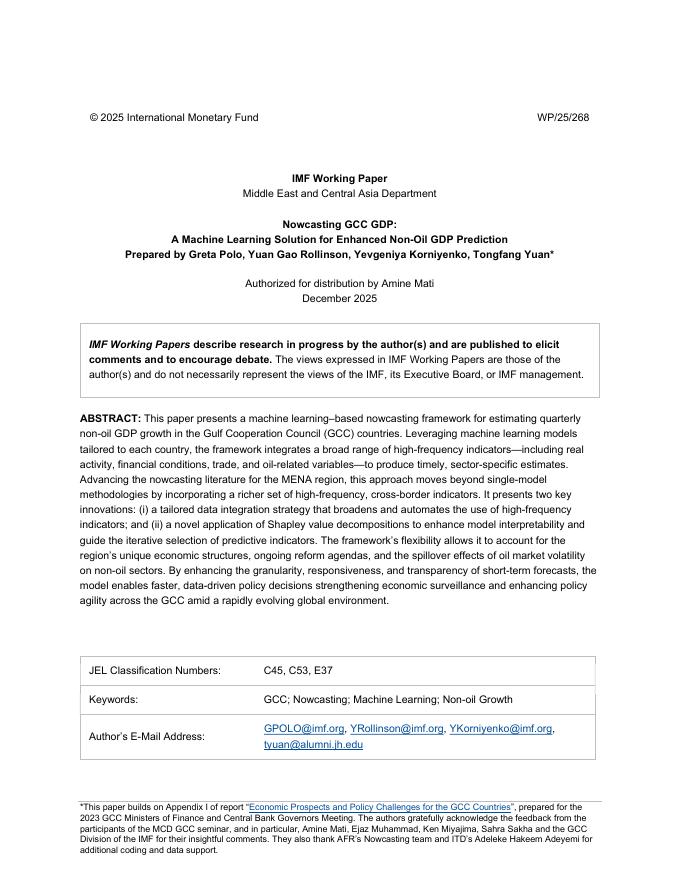 国际货币基金组织:预测GCC GDP:一种用于增强非石油GDP预测的机器学习解决方案(英文版).pdf