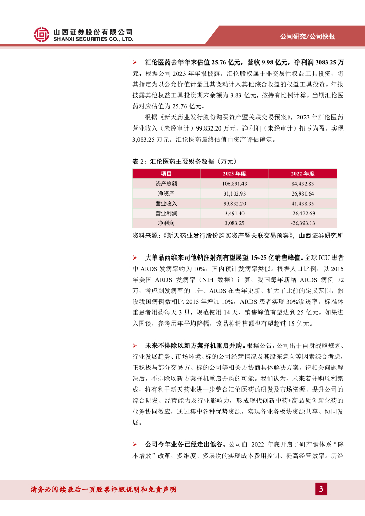山西证券:新天药业(002873)-业务逐步走出低谷,终止收购汇伦医药,不排除择机重启.pdf