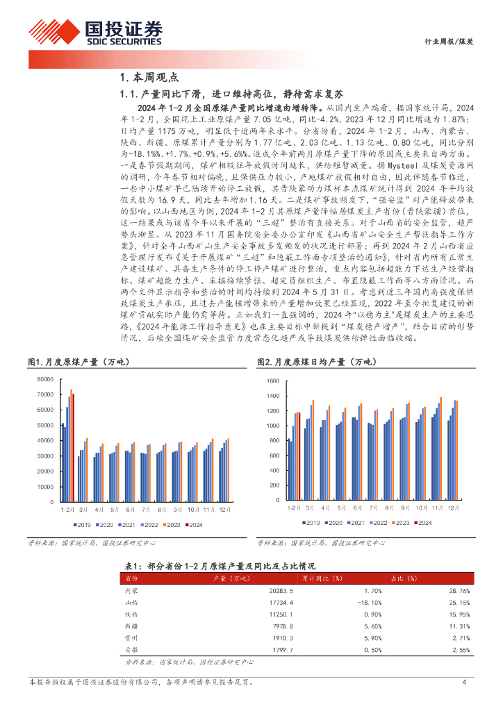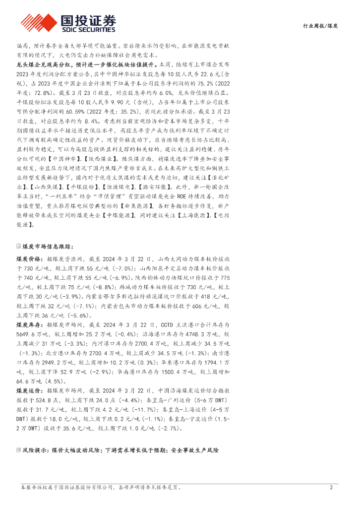 国投证券:煤炭行业周报:产量同比下滑,静待需求复苏;年报陆续发布,分红强化价值.pdf